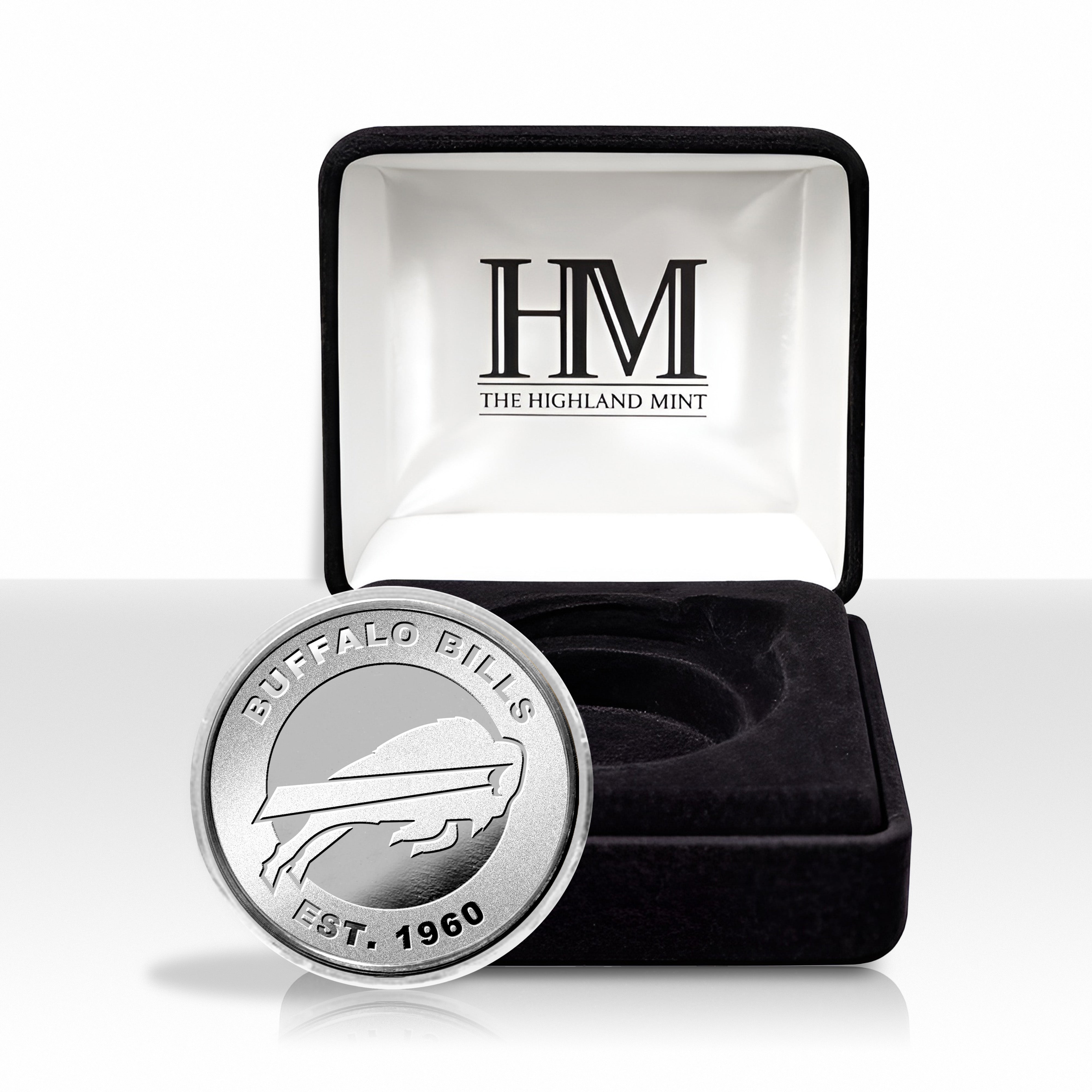 Own a part of the game with the official Buffalo Bills Flip Coin, a replica of the coin used during the official coin toss at 2025 home games! Expertly crafted and plated in brilliant silver, this limited-edition 39mm coin is minted to celebrate the Bills final season in their Stadium at Orchard Park with a special farewell logo on one side and the official NFL Game Coin design on the other. Each coin is individually numbered on the edge, securely encased in a clear protective capsule, and displayed in a premium black suede jewelry box. Only 5,000 coins available and each is accompanied by a certificate of authenticity. Proudly made in the U.S.A. by The Highland Mint.