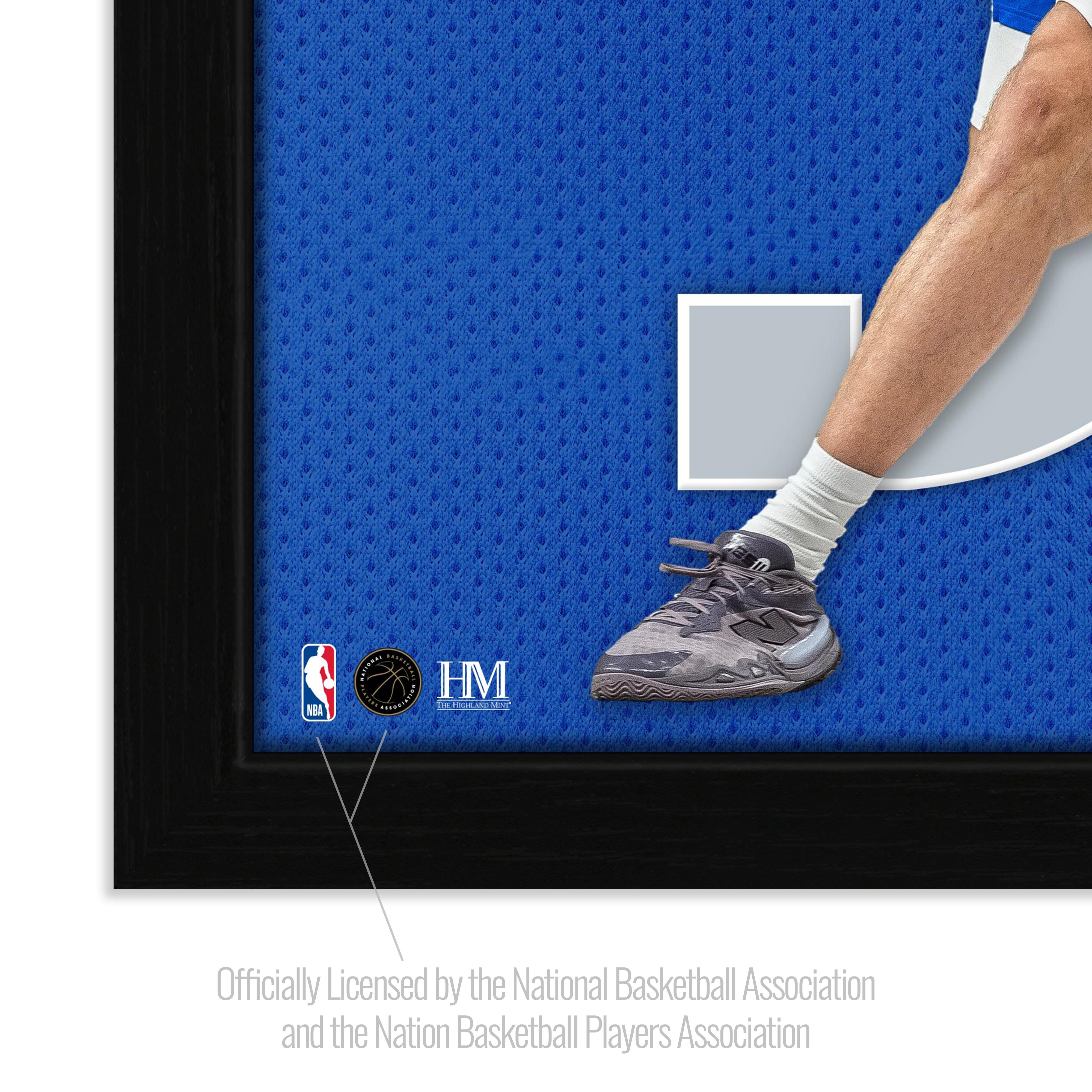 This unique collectible frame features Cooper Flagg's action image super imposed on the back of his team jersey over his number and name. The printed art is delivered in a 13” x 13” wood frame under glass and ready to hang. Officially licensed by the NBA and NBPA. Proudly made in the USA by The Highland Mint!