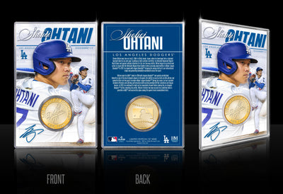 The Los Angeles Dodgers 9-Time World Series Champions Deluxe Ticket Collection is a tribute to a historic franchise legacy. This impressive 20" x 24" frame features 2.5" wide black wood molding, premium suede matting, and is protected under plexiglass. Inside, nine replica World Series tickets—one from each championship year—are artfully displayed to celebrate the Dodgers’ legendary postseason runs. Also included are two 39mm 24kt gold-plated coins: one minted with the official Dodgers team logo, and the other with the 2025 World Series Champions mark. A custom nameplate with championship years is matted beneath the tickets, while a hand-numbered certificate is adhered to the back of the frame. Limited to only 1000, this officially licensed MLB collectible is proudly made in the USA by The Highland Mint — a stunning showpiece for any Dodgers fan.