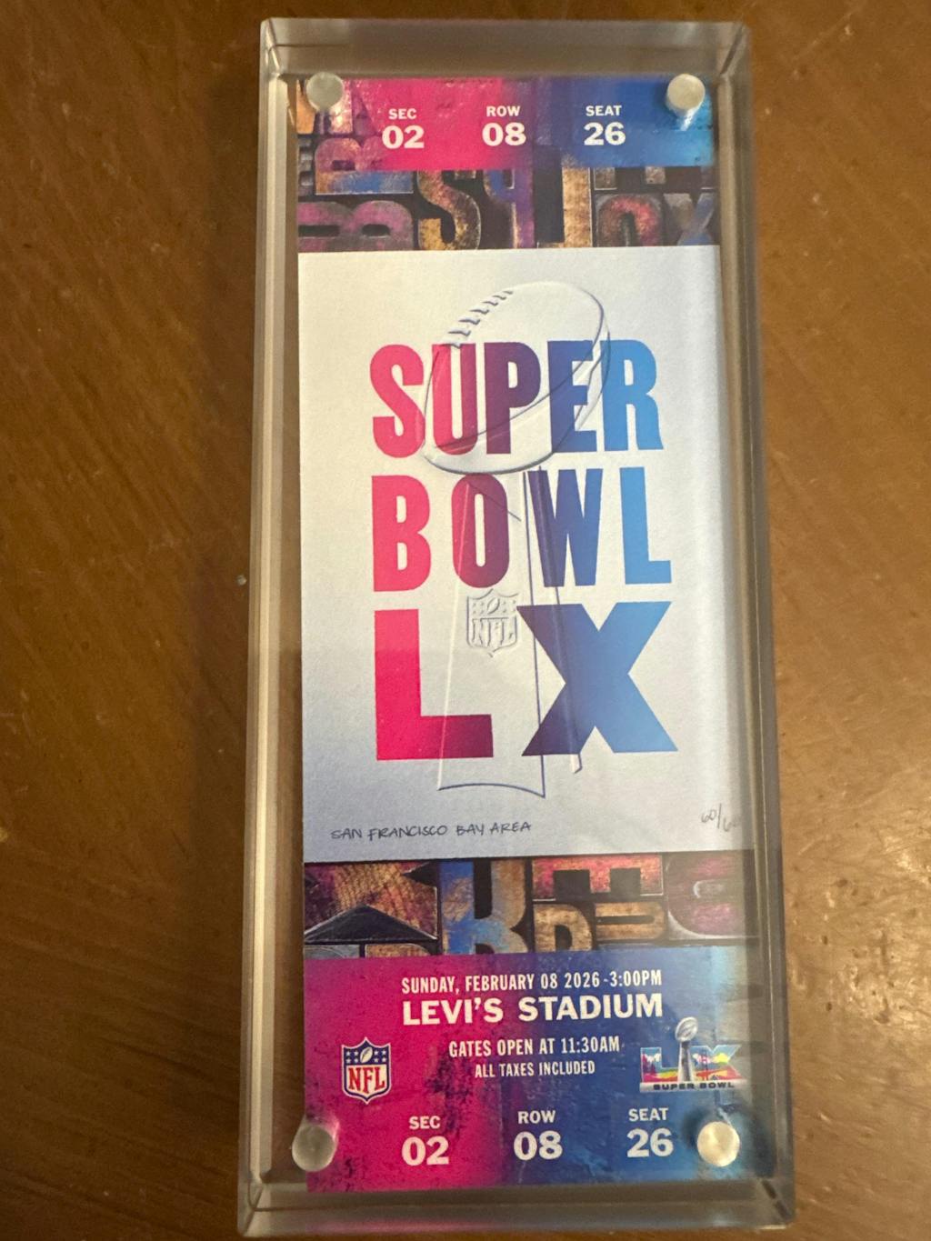 • A reprint of the Official Super Bowl LX Game Ticket.